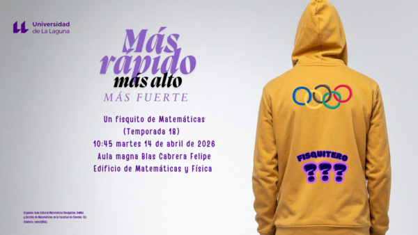 UN FISQUITO DE MATEMÁTICAS (TEMPORADA 18) FISQUITO: Más rápido, más alto, más fuerte FISQUITERO: Lo descubrirás cuando asistas al fisquito (es una gran sorpresa!!) HORA: 10:45 DÍA: Martes 14 de abril de 2026 LUGAR: Aula Magna Blas Cabrera Felipe, Edificio… Seguir leyendo →