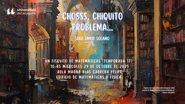 FISQUITO: Chosss, chiquito problema…FISQUITERA: Sara Embid SolanoHORA: 10:45DÍA: Miércoles 29 de Octubre de 2025LUGAR: Aula Magna Blas Cabrera Felipe, Edificio de Matemáticas y Física de la ULL